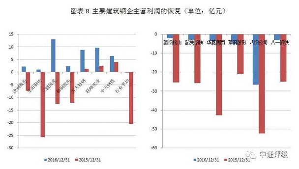 行業(yè)內(nèi)主要建筑鋼企主營利潤增幅明顯,遠(yuǎn)高于鋼鐵行業(yè)的整體平均值。但建筑鋼材市場的回暖呈現(xiàn)一定區(qū)域性分化,部分建筑鋼企2016年主營利潤仍然虧損,但相較2015年也實現(xiàn)大幅減虧。