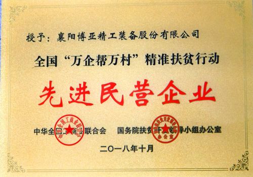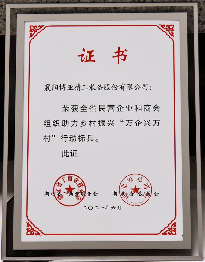 近年來,博亞公司始終積極倡導“企業(yè)發(fā)展不忘回饋社會”理念,大力弘揚光彩精神,積極履行社會責任,主動參與精準扶貧、鄉(xiāng)村振興、光彩事業(yè)和公益慈善事業(yè),累計捐贈資金1000多萬元。2018年被評為全國“萬企幫萬村”先進民營企業(yè)。2020年被全國工商聯(lián)表彰為抗擊新冠肺炎疫情先進民營企業(yè)。2021年4月,公司黨委書記、董事長李文喜被表彰為“全省脫貧攻堅先進個人”,5月,被表彰為湖北省光彩事業(yè)助力鄉(xiāng)村振興、社會公益“光彩之星”,公司被表彰為助力鄉(xiāng)村振興“萬企興萬村”行動標兵。同時,為把博亞人和、擔當精神傳承下去,在2020年修訂公司章程時,寫入了黨建和履行社會責任的具體要求,用實際行動詮釋了博亞公司的家國情懷和責任擔當。